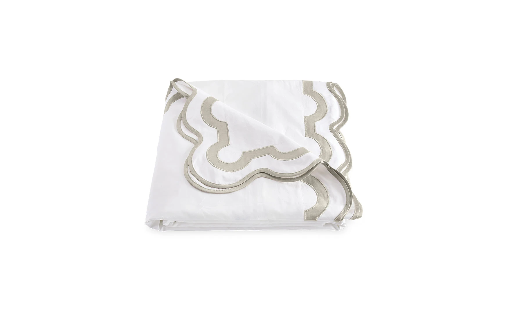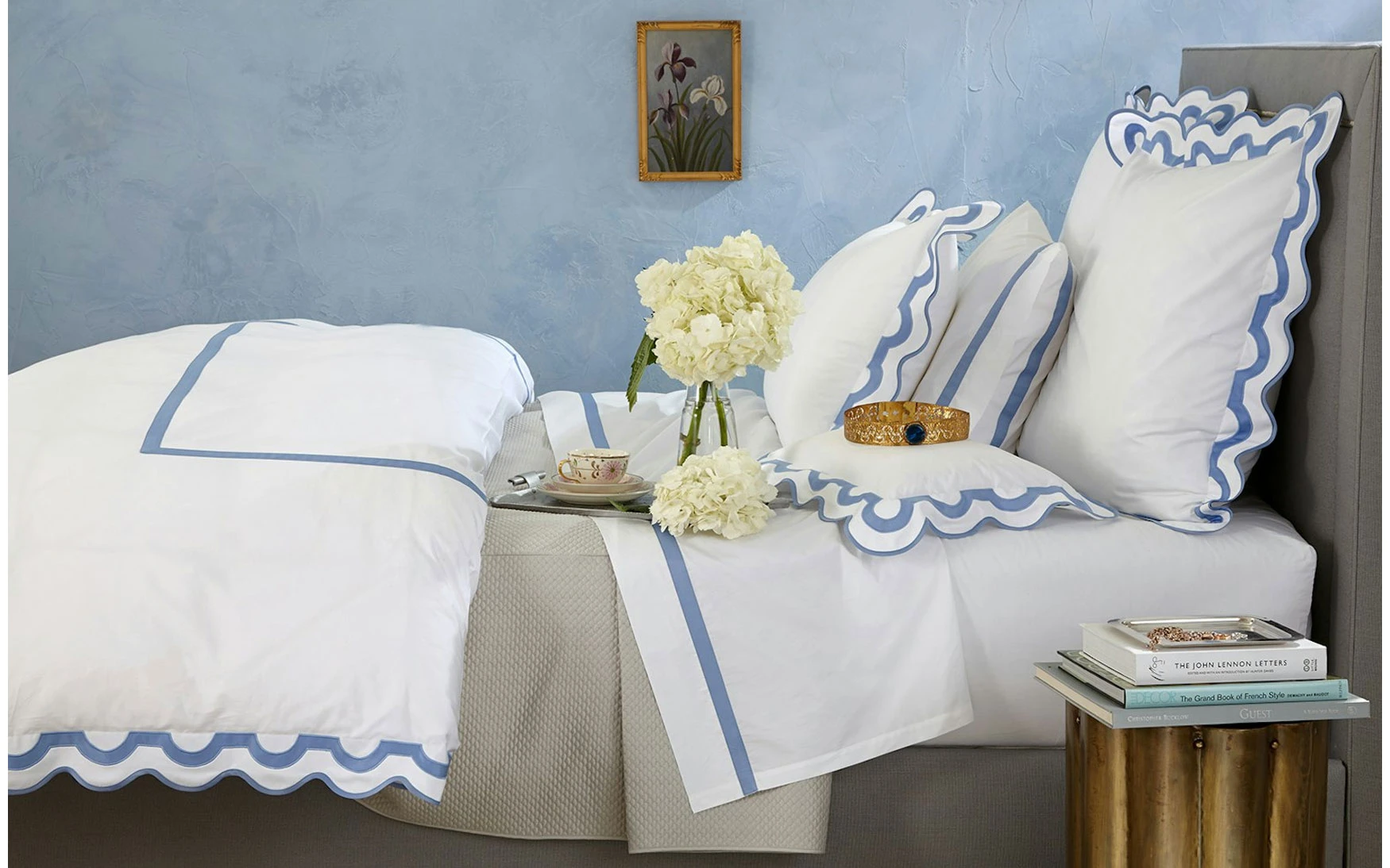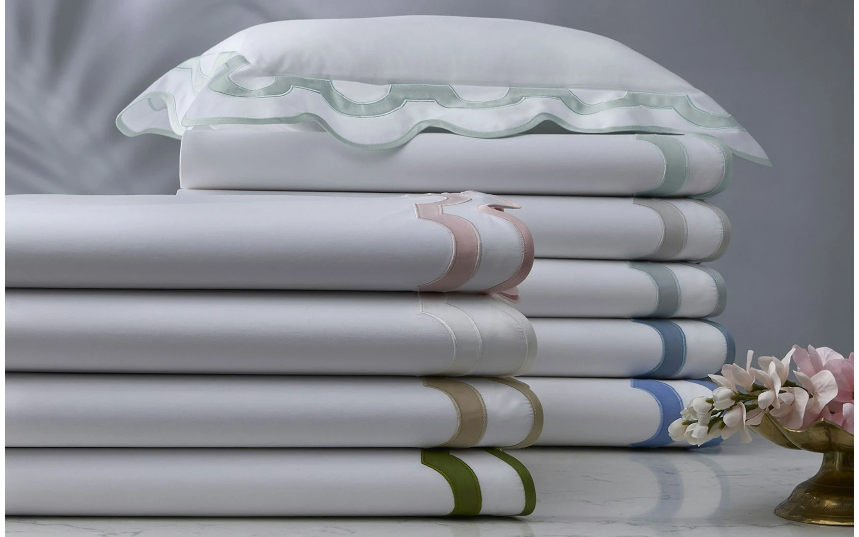 Inspired by a stroll down Worth Avenue in Palam Beach, the unique arch trim of shop awnings becomes a tasteful complement to our soft and luxurious 600 thred count Milano Egyptain cotton percale bedding.