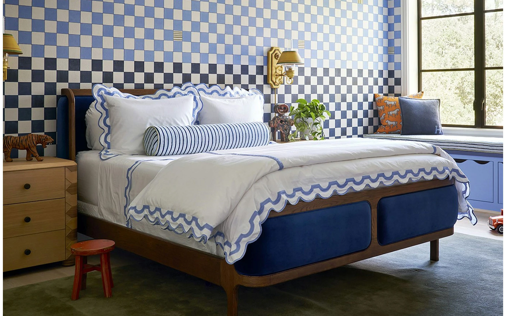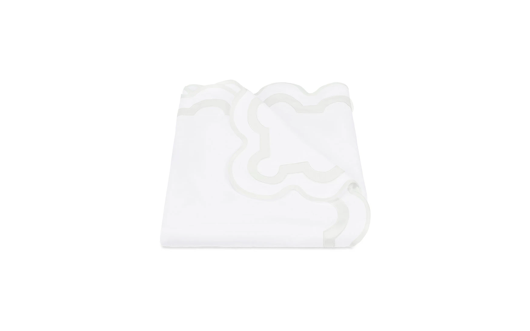 Inspired by a stroll down Worth Avenue in Palam Beach, the unique arch trim of shop awnings becomes a tasteful complement to our soft and luxurious 600 thred count Milano Egyptain cotton percale bedding.